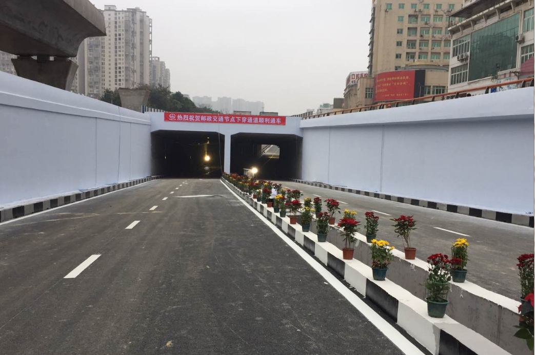 郵政交通節(jié)點項目起于蓮莊北路順康汽車檢測中心處,終于瑞德酒店門口,采取“主線下穿、左轉(zhuǎn)高架”方案,設(shè)下穿通道下穿南環(huán)西路與南環(huán)中路交叉口,全長700米,凈寬2×8.5米,其中暗埋段長度為120米,敞開段(U型槽)長275米;南環(huán)路往溪南南路方向設(shè)左轉(zhuǎn)匝道高架,橋長246米,兩側(cè)引道擋墻全長117米,項目總投資約1.4億元。
