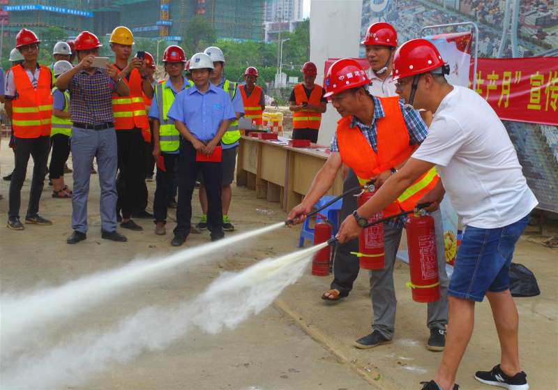 6月16日是“全國(guó)安全生產(chǎn)宣傳咨詢?nèi)铡?。?dāng)日,龍巖城發(fā)集團(tuán)與市城投公司組織人員分別前往中心城區(qū)華蓮西路一期、火車站站前高架橋、龍巖大橋高架橋、龍巖大道四期下穿工業(yè)路通道等四個(gè)項(xiàng)目工地,開(kāi)展安全生產(chǎn)宣傳活動(dòng)。圖為工作人員現(xiàn)場(chǎng)指導(dǎo)工人使用滅火器。